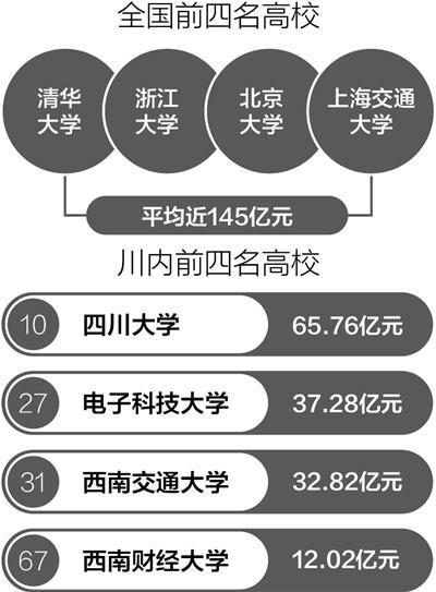 记者发现,川内有4所高校“上榜”,分别是四川大学、电子科技大学、西南交通大学、西南财经大学。根据各高校近期公布的2014年年度决算情况,可清晰地看出高校的收支总体情况。