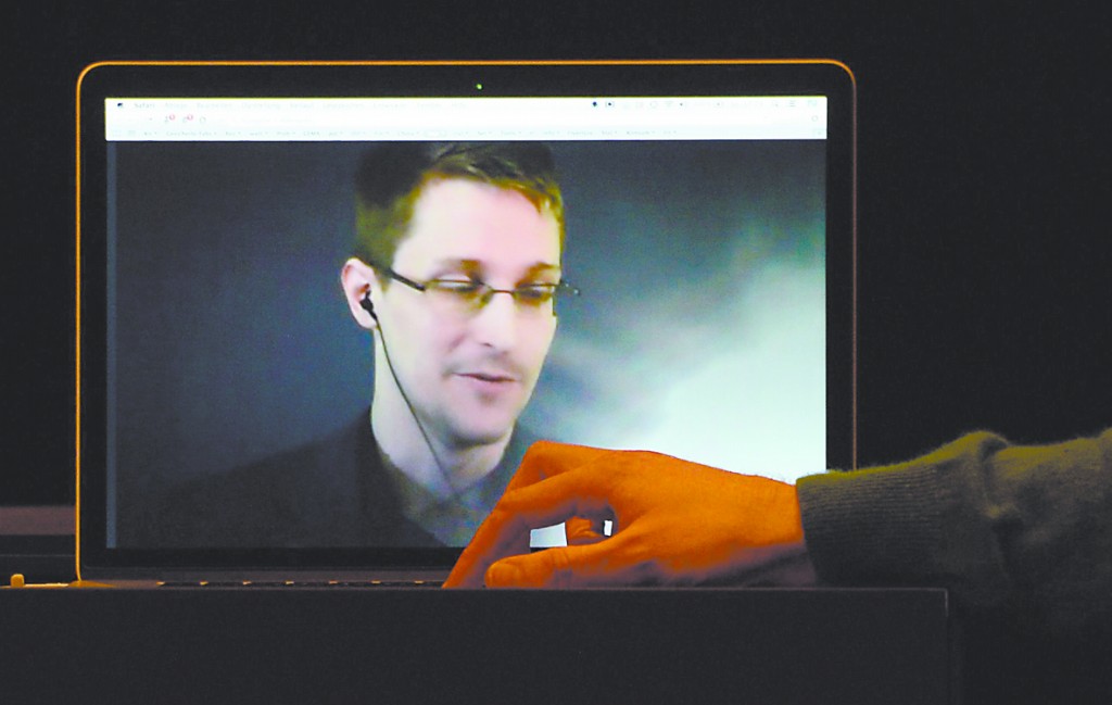 内容摘要:一名网民正在观看去年11月斯诺登在德国被授予“斯图加特和平奖”的视频。