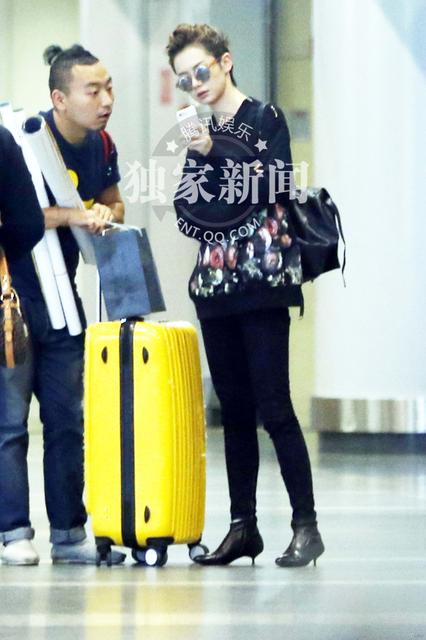 腾讯娱乐讯(赵阳阳 图/文)日前,戚薇在助理的陪同下回到北京,一身黑色着装差点让记者没敢认。当天,戚薇发型很酷,有点凌乱的卷发染着棕黄的颜色,复古墨镜衬托的肤色很白。上身一件大花黑T恤、下身修身黑色长裤,再配以细跟短靴和黑色小双肩背包,透着股叛逆的味道,完全颠覆了此前或清纯、或性感的风格。不过,这样的风格倒也与戚薇直爽的性格有几分契合。
